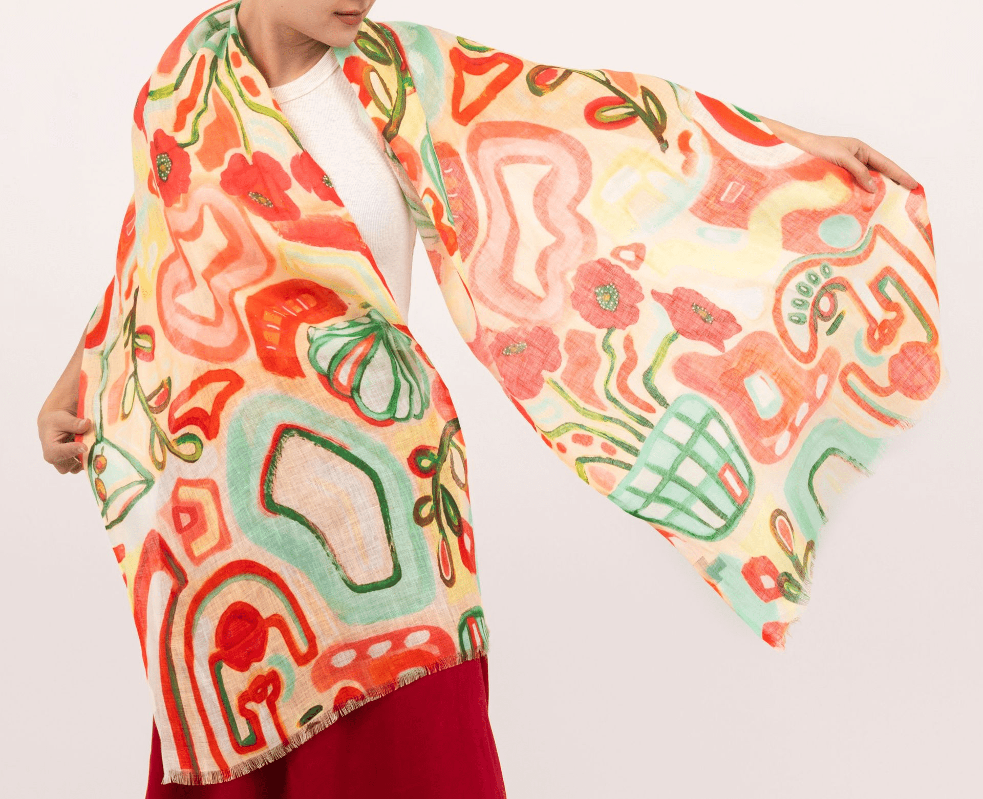 Dlux - Doodle Print Scarf Red Accessories Imogino